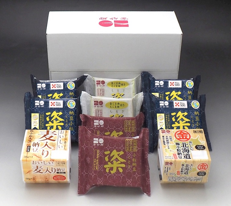 金砂郷食品自慢のオリジナル納豆をバランス良く詰め合わせた人気のセットです。【商品内容】?粢(しとぎ)(40gx2パック)x2袋?粢(しとぎ)金ごま油えごま油付き(40gx2パック)x2袋?粢(しとぎ)納豆小粒(40gx2パック)x4袋?おいしい北海道極小粒納豆ミニ3(35gx3パック)x1個?おいしい麦入り納豆ミニ3(50gx3パック)x1個■注文期間:お申し込みから7日程度■賞味期限:約1週間粢(しとぎ)納豆の召し上がり方まず、たれからしを入れる前に、納豆だけで是非一口召し上がってください(10〜15度くらいがおいしい目安温度です。冷蔵庫から出して少し経ってからがおすすめです)。ユキシズカのほのかな香りと甘さがお口の中に広がることでしょう。次にたれを入れてまた一口、大豆との相性をお楽しみください。最後に、からしをお好みで入れて(からし無しでもおいしくいただけます)、納豆本来のおいしさを是非ご堪能ください。