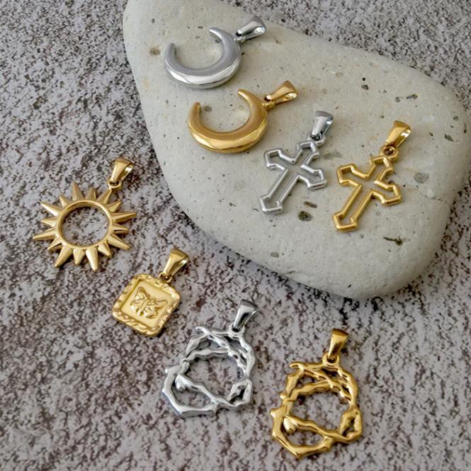 ステンレス製 ペンダントトップ 【77. ゴシック】金属アレルギー対応 ハロウィン 十字架 太陽 パーツ三日月 パーツメンズ パーツ ネックレス ハンドメイド チ