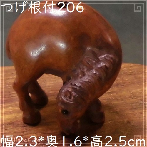 つげ 根付け 木彫り 彫刻 206 草を食む馬 ウマ