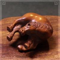 柘植(ツゲ)の木材を彫刻した馬(うま)の小さな根付けです。 身をひねりながら足元の草を食べているウマです。 そのまま自立した状態で飾る事もできますよ。 中国の彫刻師さんの手彫り作品で、撮影した現品をお届けします。 |