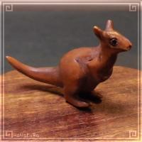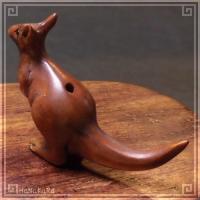 柘植(ツゲ)の木材を彫刻したカンガルーの小さな根付けです。