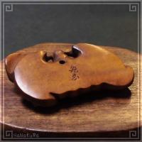 柘植(ツゲ)の木材を彫刻した蝙蝠(こうもり)の小さな根付けです。