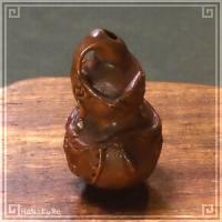 柘植(ツゲ)の木材を彫刻した瓢箪(ひょうたん)の小さな根付けです。 瓢箪は福禄(幸福と財産)や繁栄を意味する縁起物ですよ。 瓢箪の表面に、蔓に実る瓢箪が描かれています。(253と同構図です) 中国の彫刻師さんの手彫り作品で、撮影した現品をお届けします。 |