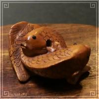 つげ 根付け 木彫り 彫刻 258 重双魚B