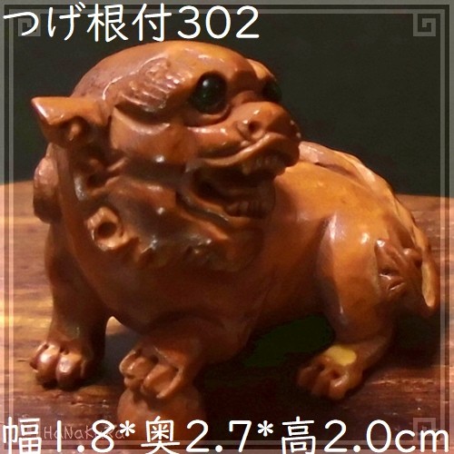つげ 根付け 木彫り 彫刻 302 獅子戯珠