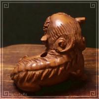 柘植(ツゲ)の木材を彫刻した獅子の小さな根付けです。