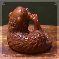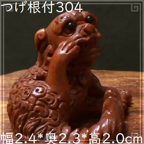 柘植(ツゲ)の木材を彫刻した獅子の小さな根付けです。 後ろ足で顔を掻きながらくつろいでいる獅子です。 (305と左右対になる構図です) 中国の彫刻師さんの手彫り作品で、撮影した現品をお届けします。 |