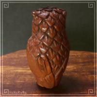 柘植(ツゲ)の木材を彫刻したフクロウの小さな根付けです。 きりりとした表情のふくろうです (314と同じ構図です) 中国の彫刻師さんの手彫り作品で、撮影した現品をお届けします。 |