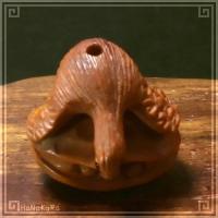 柘植(ツゲ)の木材を彫刻したカモメの小さな根付けです。 貝を食べている鴎(かもめ)です。 カモメは雑色で、いろいろな物を食べるそうですよ。 中国の彫刻師さんの手彫り作品で、撮影した現品をお届けします。 |