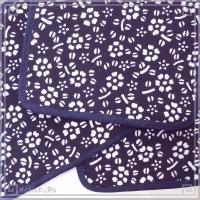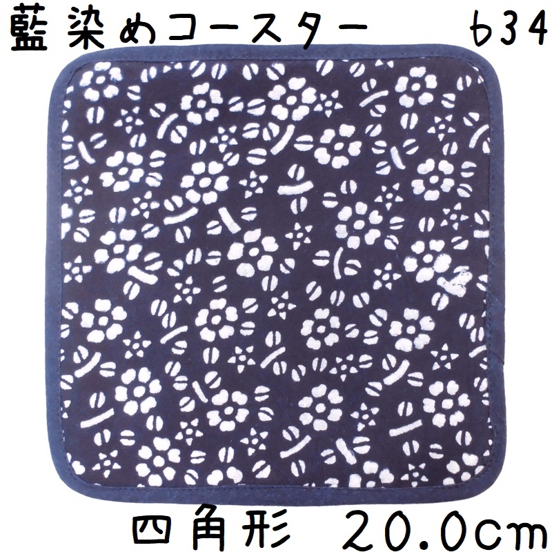 藍染生地を使用して作った、正方形のコースターです。 約20cmの正方形で、ヤカンが置ける大きめサイズのコースターです。 しっかりした裏地も付いた丈夫な作りですよ。 →同じ柄の藍染生地 藍色34「花絨毯」も販売しています