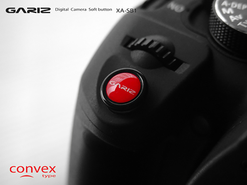 ゲリズのロゴ入りレリーズボタン、黒と赤の2個セット 両面テープでシャッターに簡単装着! 軽く押すだけでシャッターを切ることができます。 半押しが苦手な方にオススメです。