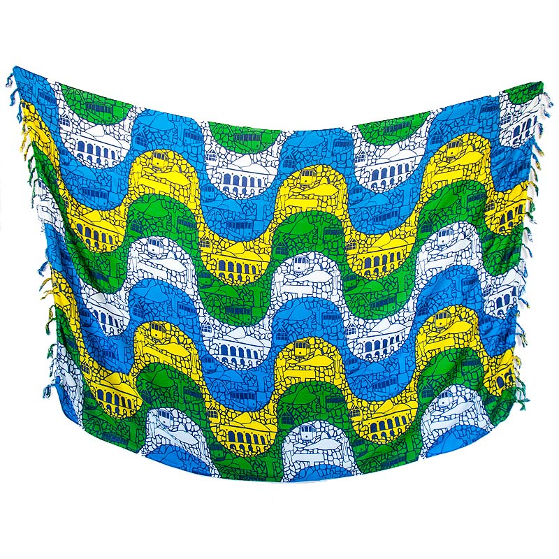 ブラジルカラーRIOタイル柄【ブラジルカンガ】パレオ