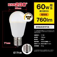 <10個セット・1個当たり499円>【電球色・E17口金・60W相当・調光器対応】LED電球 ミニクリプトン球 広配光タイプ 760lm 省エネ スポットライト ダウンライト