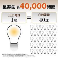 商品の特長 ●調光機能のついた照明器具に使用可能。白熱電球より低消費電力。 ●密閉器具にも使用可能。 ●ワイドに明るく照射する230度の広配光。 ●ライティングバー・ダウンライト・スタンドライトなど幅広い用途で使用可能。 ●設計寿命40000時間の高寿命。明るさ長持ち、交換の手間も省けます。(※1) ●発光面は、誤って落としても割れにくいポリカーボネート(PC)製を採用。 ●瞬時に明るく、繰り返しのオンオフにも強い。オンオフ回数が多い場所でも安心してご使用できます。 (※1)設計寿命は定められた温度設計に基づき計算した設計寿命であり、この寿命を保証するものではありません。