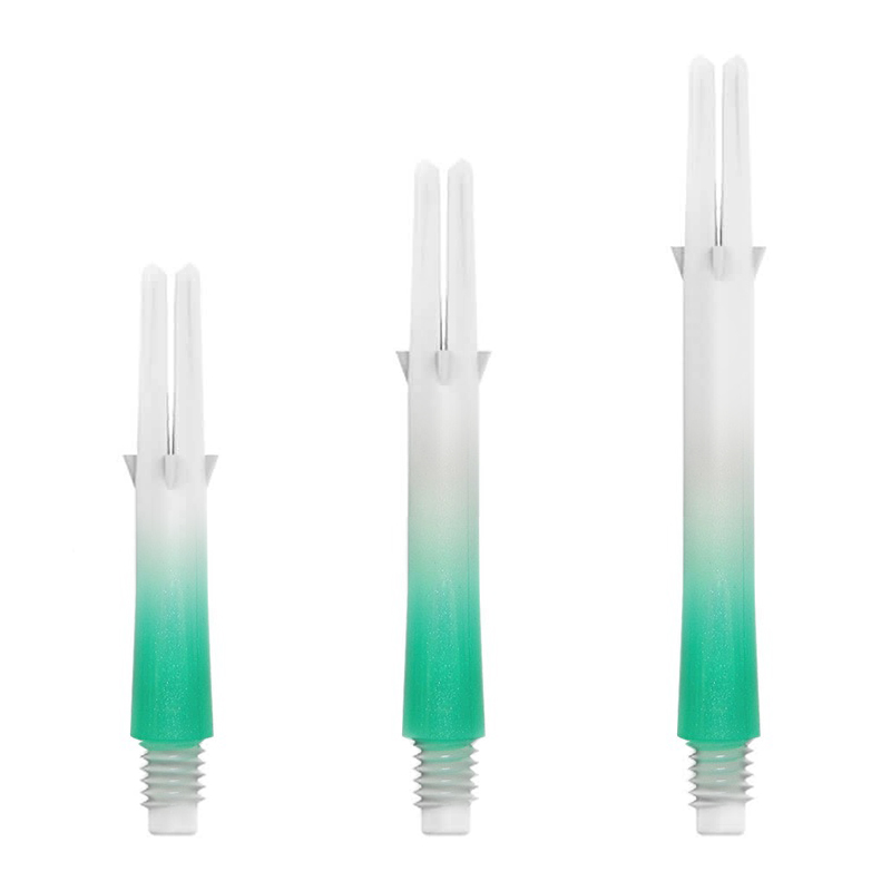 エルシャフトのミルキーホワイトに鮮やかなカラーリングを施した商品です。 染めLAROグラデーションシャフトの透明度、LAROカラーシャフトの色鮮やかさの両方を兼ね備えた発色の良いグラデーションシャフトがエルシャフトで完成しました。 エルシャフトの性能をそのままにマイダーツをオシャレに仕上げたい方におすすめです。フライトの差込口は、先端に角度を付け溝を大きく開いたことで、フライトが簡単に装着できるようになりました。 またフライトガードとして突起をつけたことで、フライトセット後は根元をがっちり守り、フライト寿命が大幅にアップします。■長さ 190、260、330 数字が、ネジ付け根からフライトガードまでの長さです。(単位mm)1セットに3本のシャフトが入っております。 |