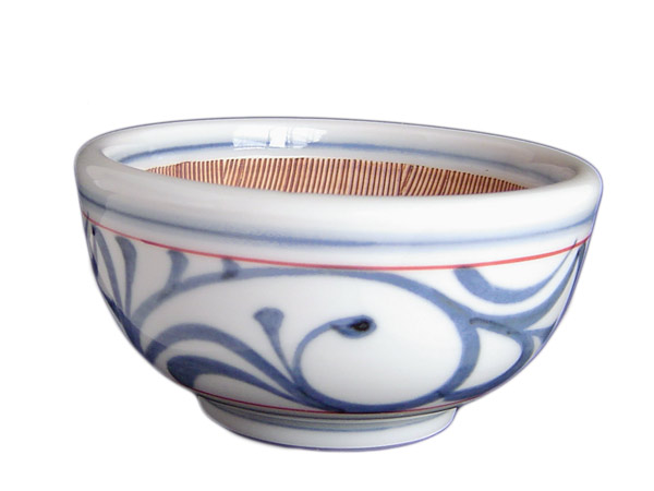 砥部焼・梅山窯・3.8寸すり鉢(朱線唐草)