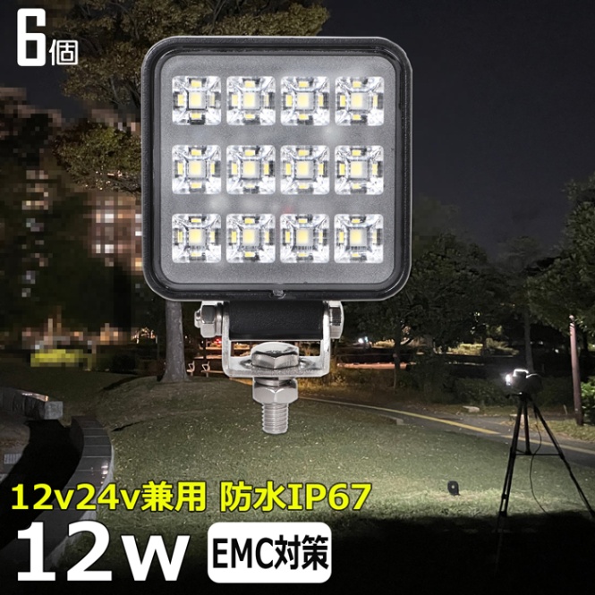 【6個セット】LED作業灯 12V 24V 集魚灯 12W ワークライト 路肩灯 船 デッキライト 漁船 トラック 荷台灯 自動車 サーチライト