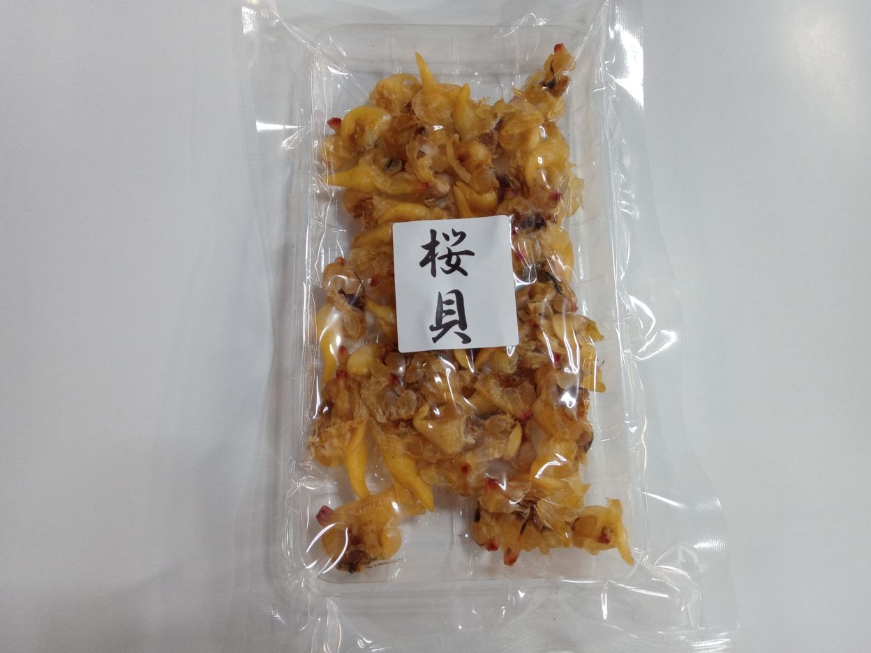 | 国内で製造した桜貝(青柳貝)のおつまみです。程よいさくら貝の食感と旨味が凝縮されたそのまま食べて美味しいおつまみですが、パスタなどのお料理にお使いいただいても十分美味しく食べれます(*^^*) |
