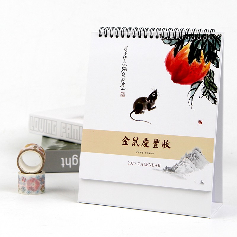 金鼠慶豊収 中国現代水墨画巨匠画家作品 2020年卓上カレンダー 中国の暦 / 方形台历 金鼠庆丰收