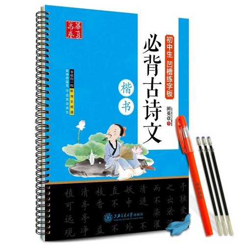 必ず暗記する古詩文 中学生くぼみ漢字楷書 中国語版なぞり書き練習帳/必背古诗文 楷书 初中生凹槽练字板