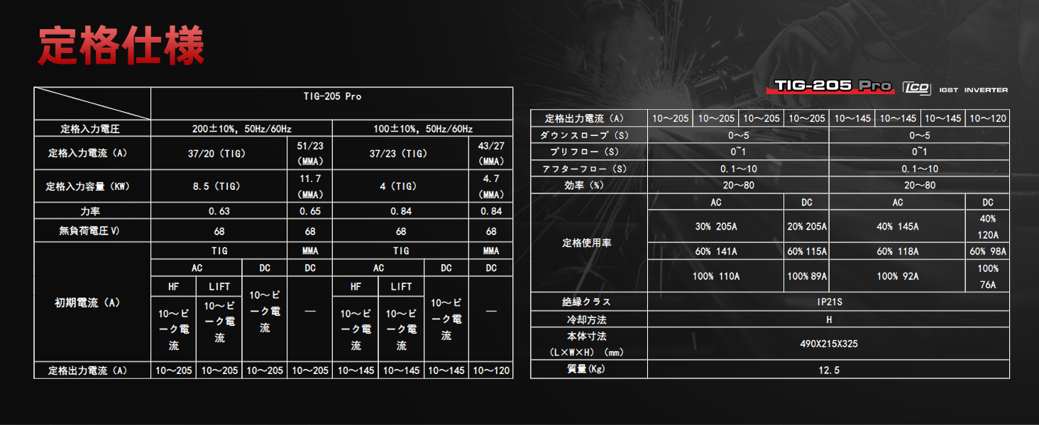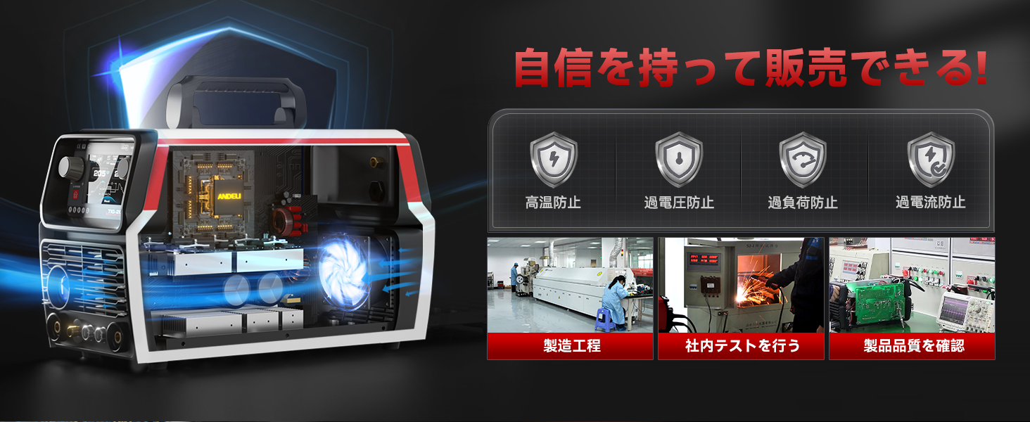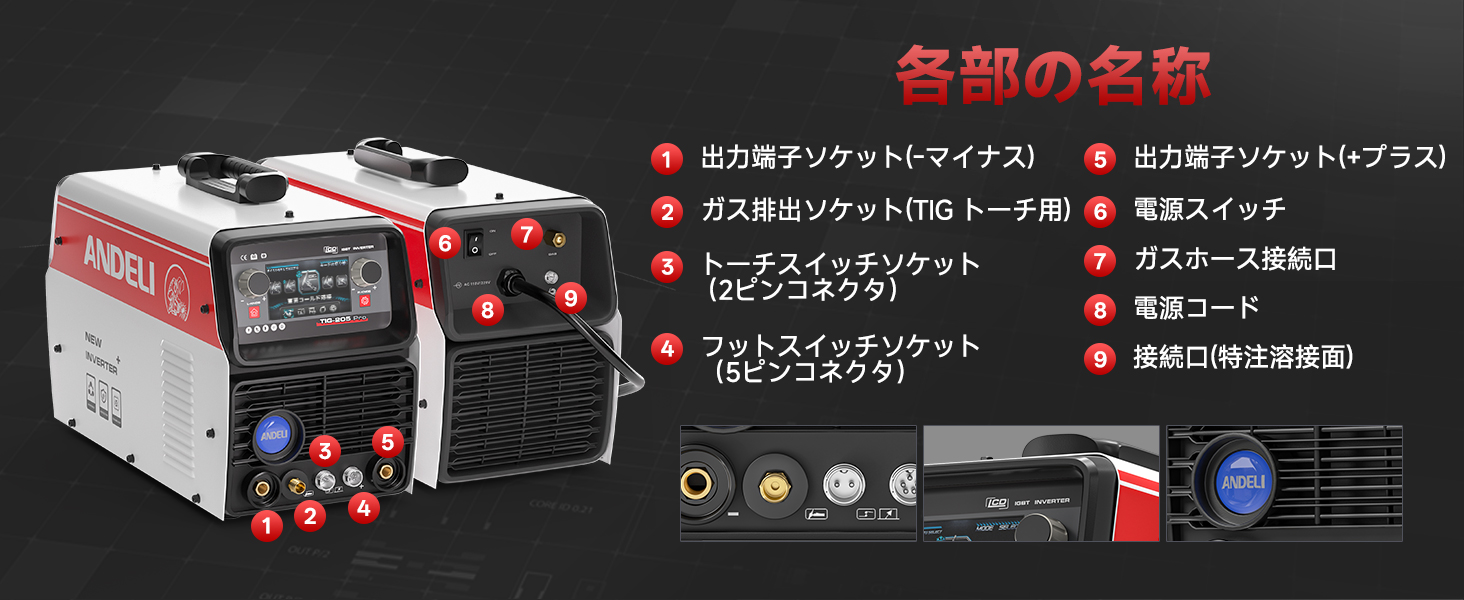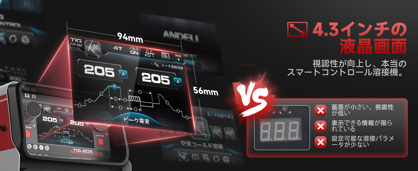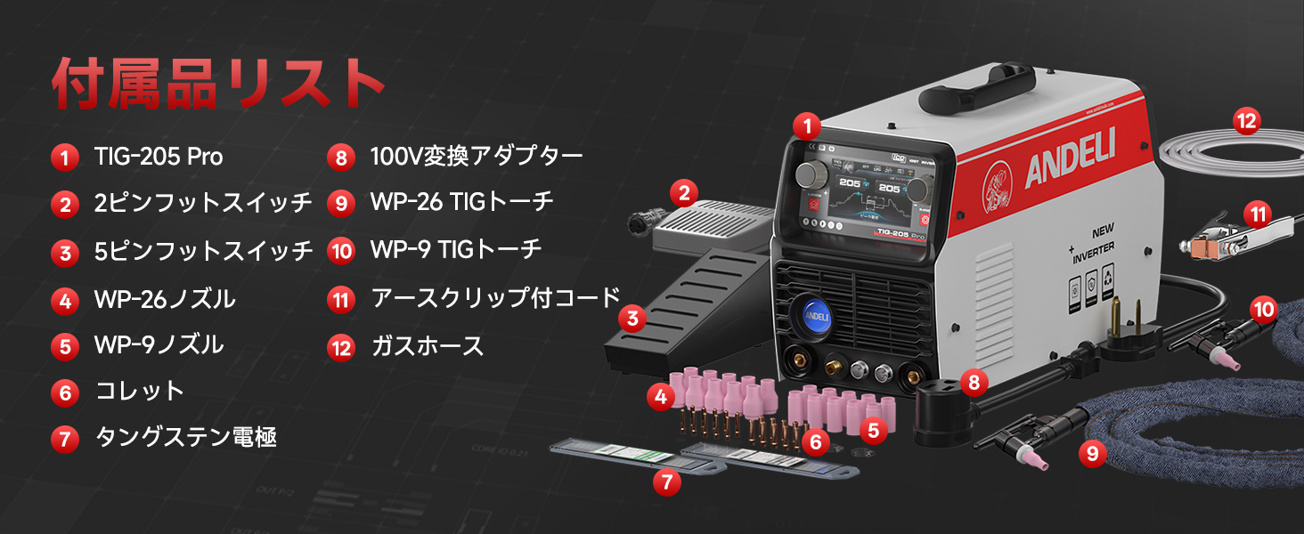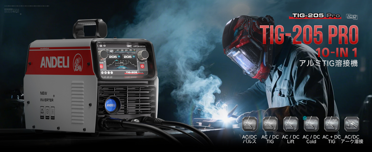 ANDELI 100V/200V 205AMP アルミ溶接機 TIG溶接機 AC DC パルスTIG/CLOD溶接/アーク溶接 日本語液晶パネル 溶接機 TIG-205Pro AC DC