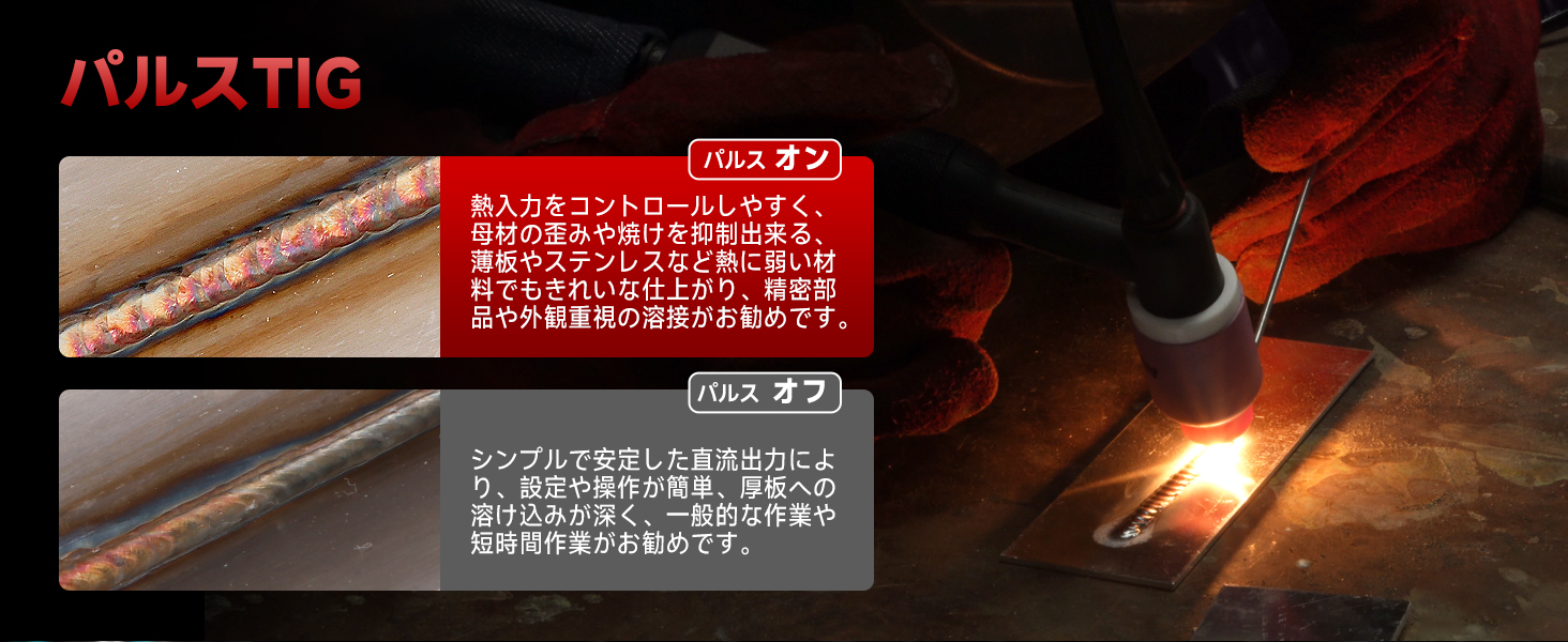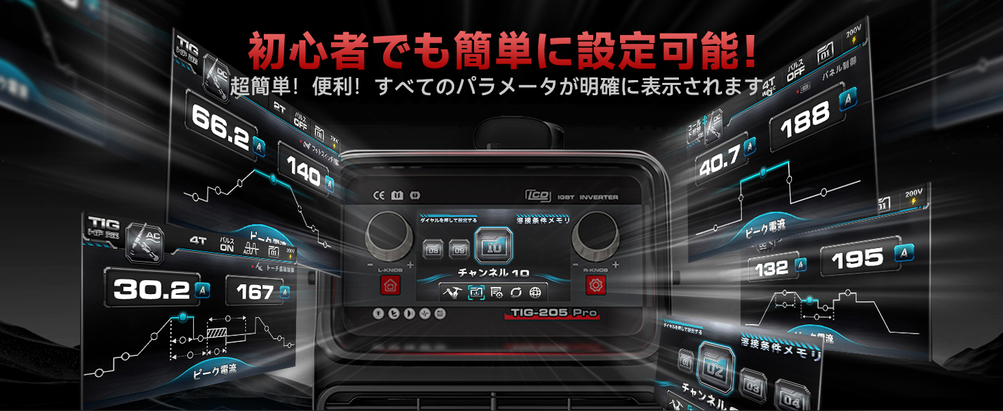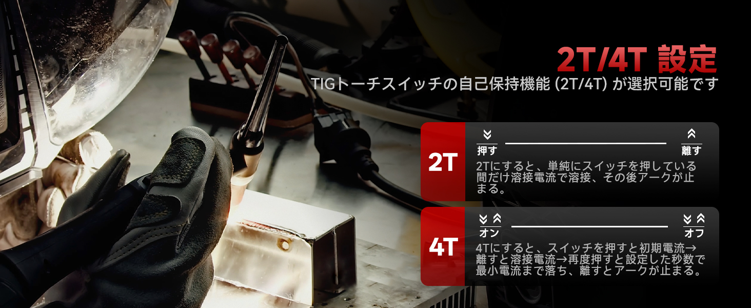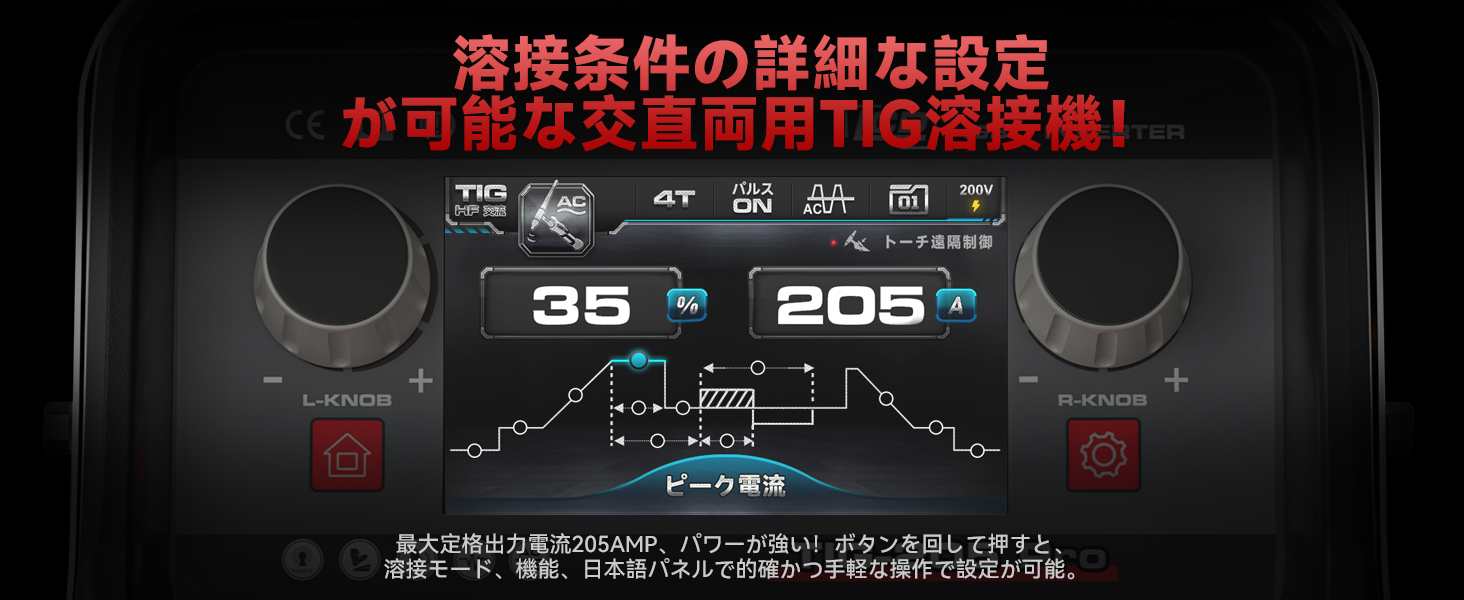 AC DC/Cold/ TIG/パルス/2T4T、複雑なボタン操作は一切なし。デジタル制御で、溶接条件の再現がダイアルを回すだけで簡単に調整できます。