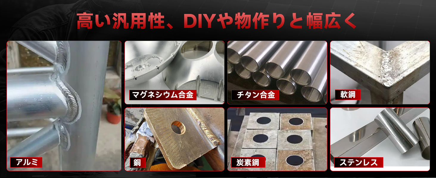 アルミ、普通薄鋼、炭素鋼、ステンレス鋼、鉄など。DIYや物作り、一般的なメンテナンス作業に適しています。