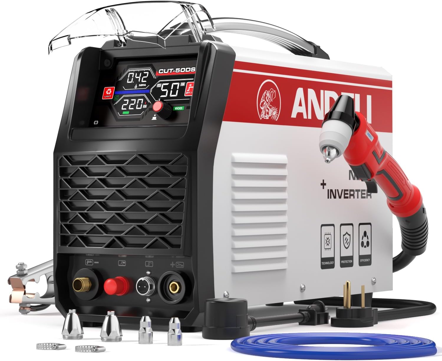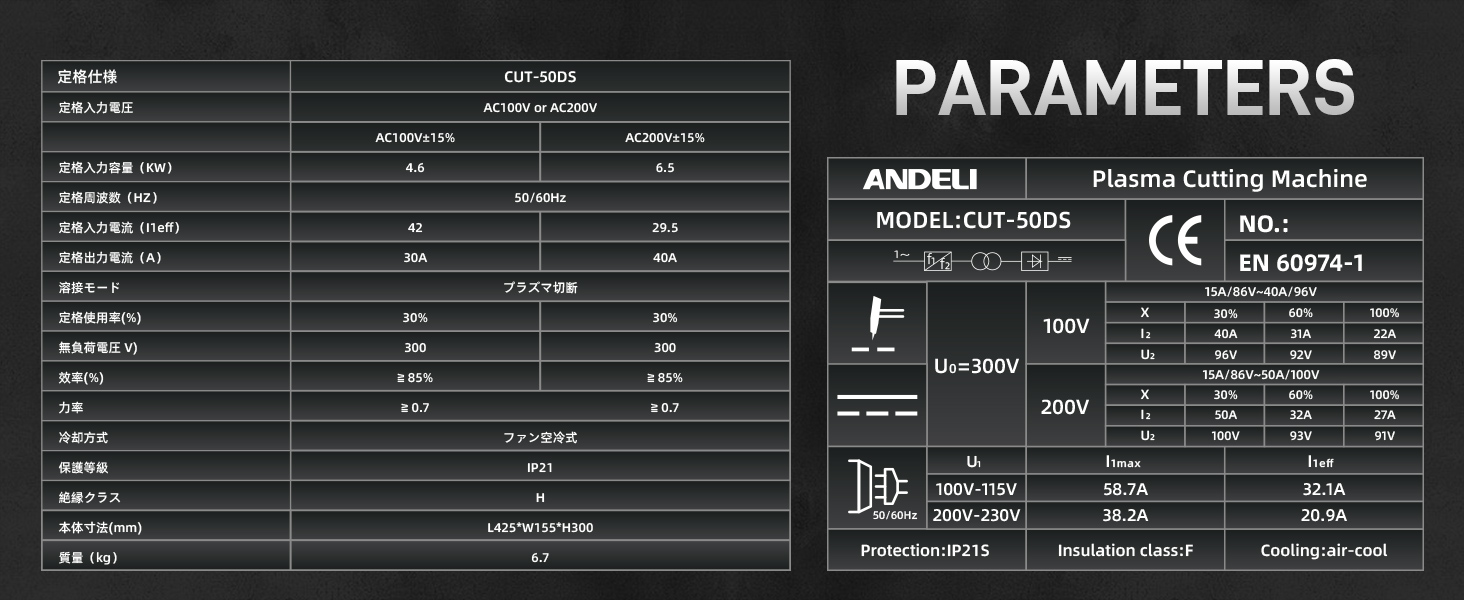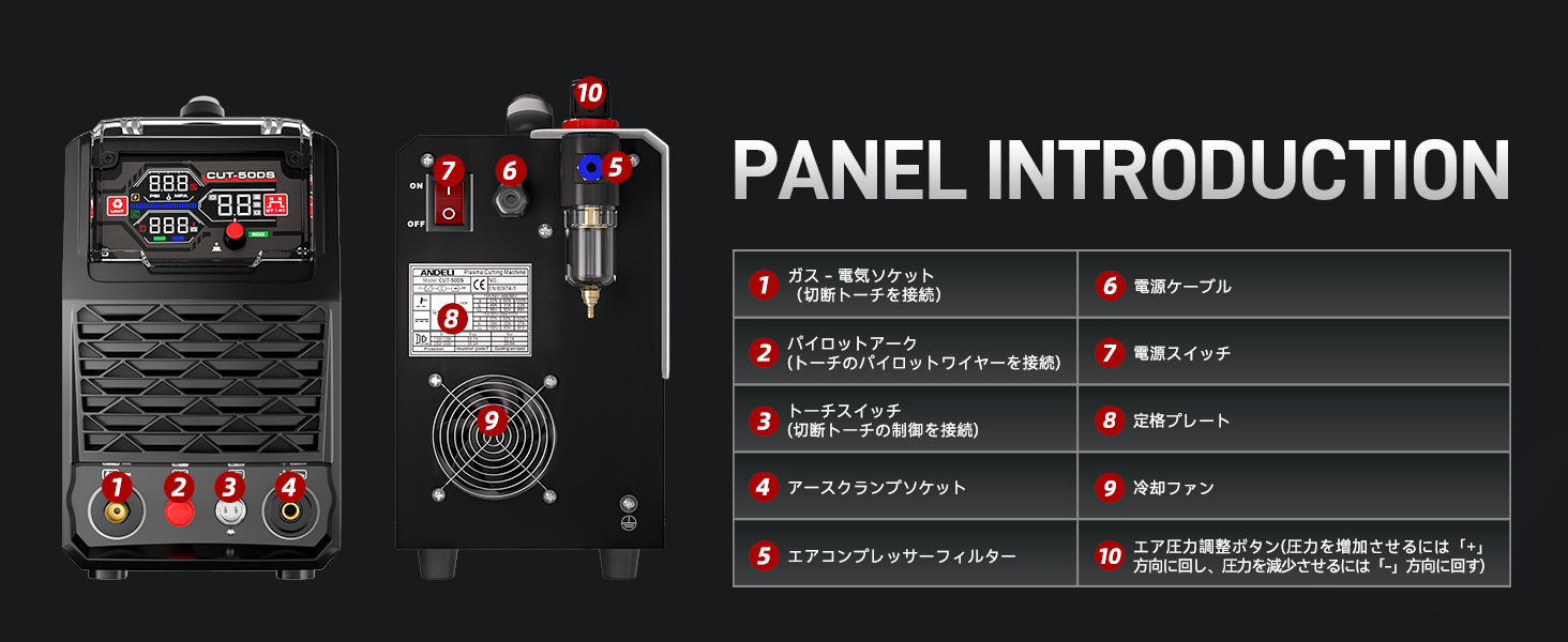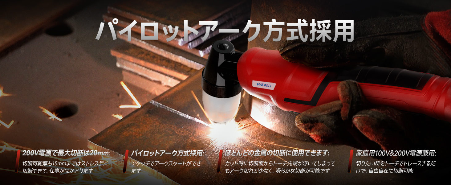 ANDELI プラズマカッター 切断可能板厚最大20MM 100V/200V兼用 プラズマ切断機 50Amp IGBT高周波 インバーター エアープラズマカッター CUT-50DS