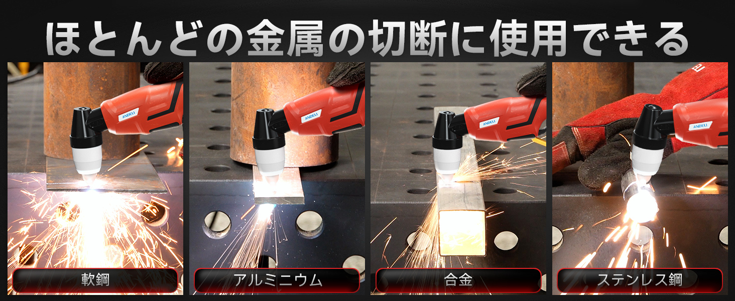 ステンレス鋼、合金、アルミニウム、軟鋼、炭素鋼など。