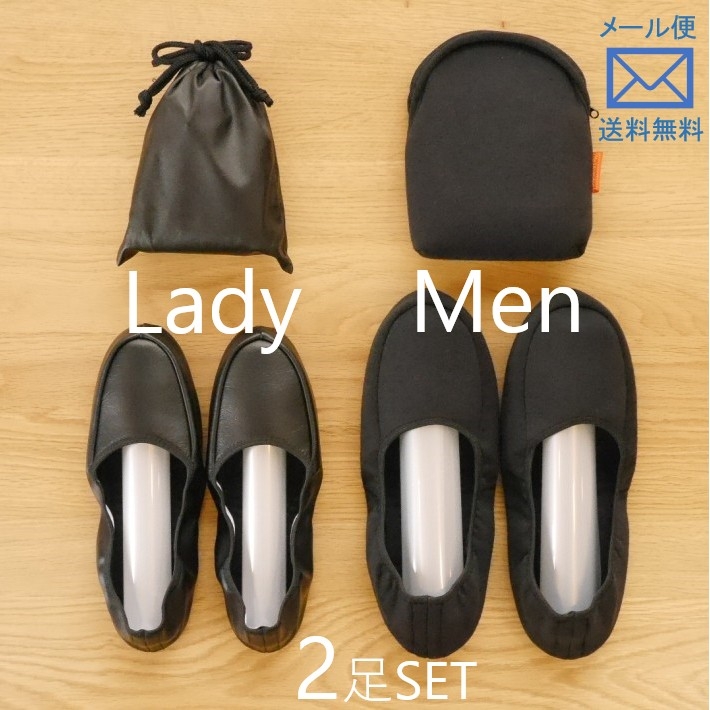 【送料無料】携帯スリッパ メンズ レディース 2足セット 紳士ニットポーチ 婦人巾着レザー 洗える 入学式 卒業式 受験 おしゃれ ルームシューズ 室内 黒