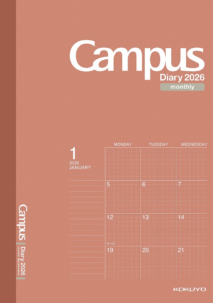 コクヨ 2026年 キャンパスダイアリー 手帳 A5 [マンスリー] 12月始まり 方眼罫 レッド ニ-CMSR-A5-26