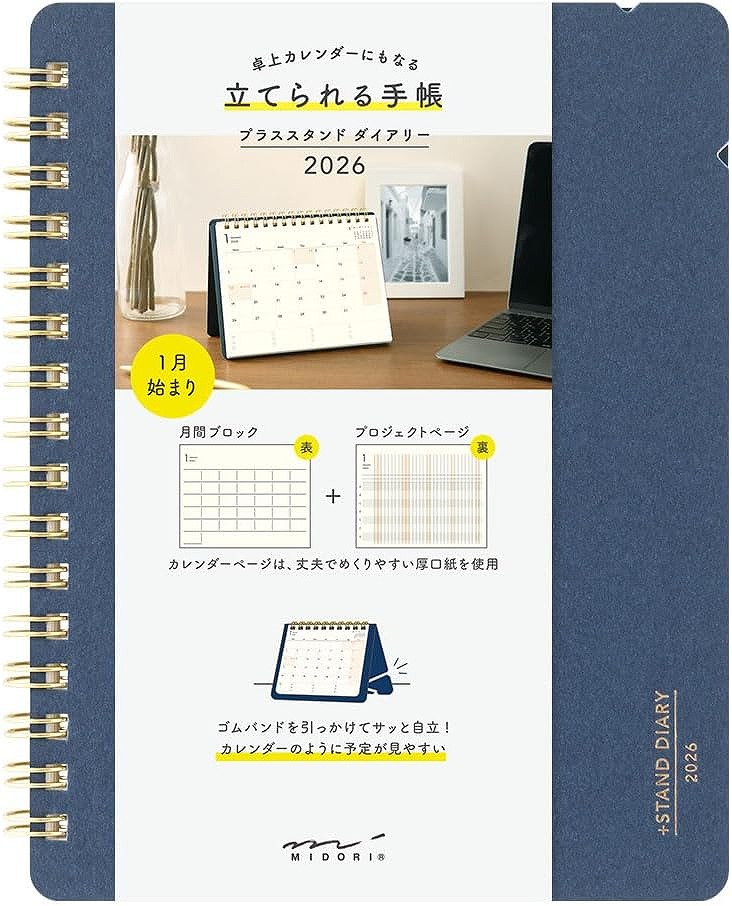 ミドリ 2026年 手帳 プラススタンドダイアリー 1月始まり B6変形判 [月間ブロック] 紺 22395006
