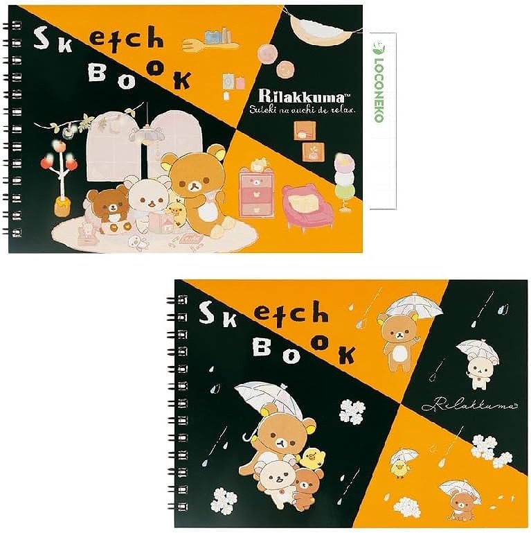 サンエックス 図案スケッチブック (B6) リラックマ (すてきなお家/雨のち晴れのリラックマ) 2種セット + ロコネコカード