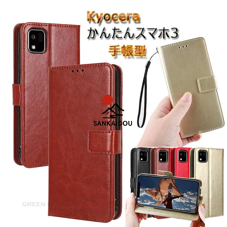 かんたんスマホ3 ケース手帳ケース KYOCERA 京セラ かんたんスマホ3 A205KC ケース 手帳型ケース かんたんスマホ3 ソフトケース yahoo カバー スタンド 頑丈カ