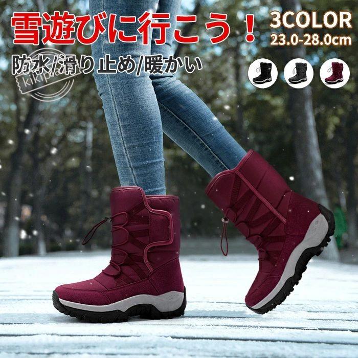 【送料無料】スノーブーツ レディース メンズ 長靴 防水 防滑 滑らない スノーシューズ 大きいサイズ ブラック 超軽量 滑り止 アウトドア 雪靴 綿靴 冬用 防寒