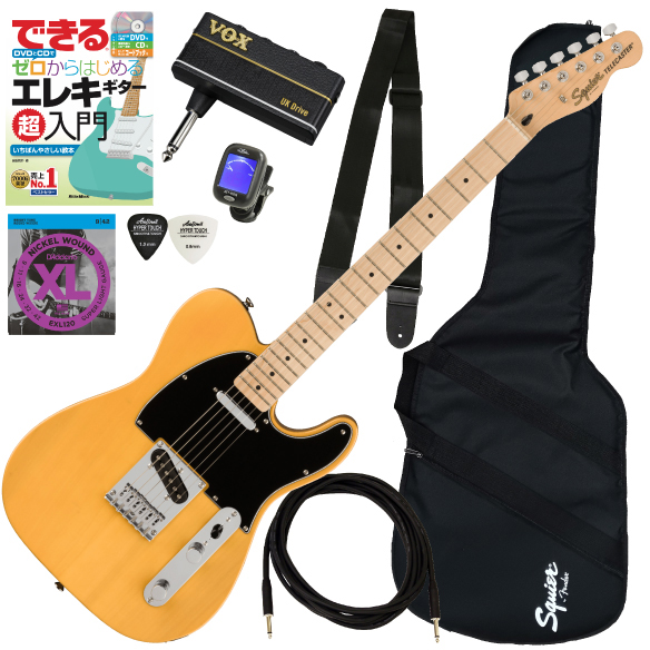 王道ともいえるクラシカルなテレキャスタースペックを引き継ぎながら、コスト・パフォーマンスも実現した『AFFINITY SERIES TELECASTER』に、練習に便利で定番のロックサウンドが楽しめるエフェクター内蔵ヘッドホンアンプ『VOX amPlug3』 、入門者向けDVD付教則本(リットーミュージック)、クリップチューナー、ストラップ、シールド(3m)、ピック、替弦をセットにしました。