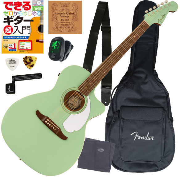 ボディトップに単板スプルース、サイド&バックにサペリ材を使用したミッドサイズのオーディトリウムボディに、Fishman Flexエレクトロニクスとピエゾピックアップを搭載した『Fender NEWPORTER PLAYER』に、ソフトケース、入門者向け教則本の決定版"できる ゼロからはじめるギター超入門(DVD付)"、クリップチューナー、ピック、ストラップ、クロス、ストリングワインダー、弦をセットにしました。