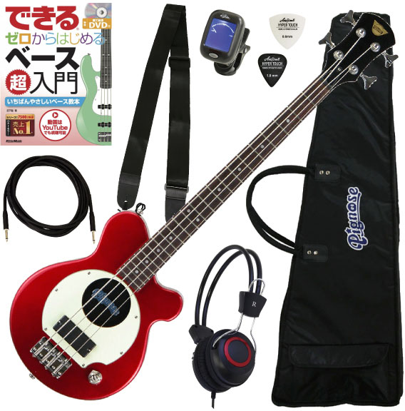 770ミリのショートスケールの弦長にカバードハムバッキングを搭載たアンプ内蔵エレキベース"PGB-200"にソフトケース、練習に便利なヘッドホン 、入門者向けDVD付き教則本、クリップチューナー、ストラップ、シールド(3m)、ピックをセットにしました。