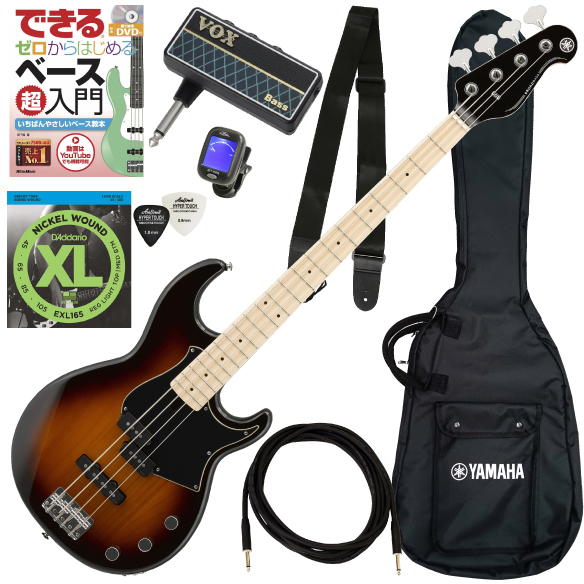 アルダーボディにマイターボルティング方式のネックジョイントによりボディと一体となった強力な鳴りを実現し、BBの伝統を継承するコンバーチブルタイプブリッジ、5ピースネック構造、メイプル指板を採用した『BB434M』に、ソフトケース、練習に便利なヘッドホンアンプ"VOX amPlug3 BASS" 、入門者向けDVD付き教則本(リットーミュージック)、クリップチューナー、ストラップ、シールド(3m)、ピック、替弦(D'Addario EXL165)をセットにしました。