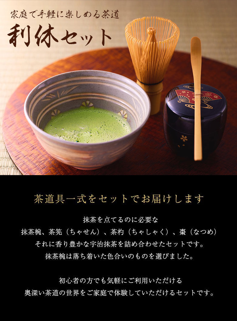 奥深い茶道の世界をご家庭で気軽に体験していただける趣きあるセットです。
