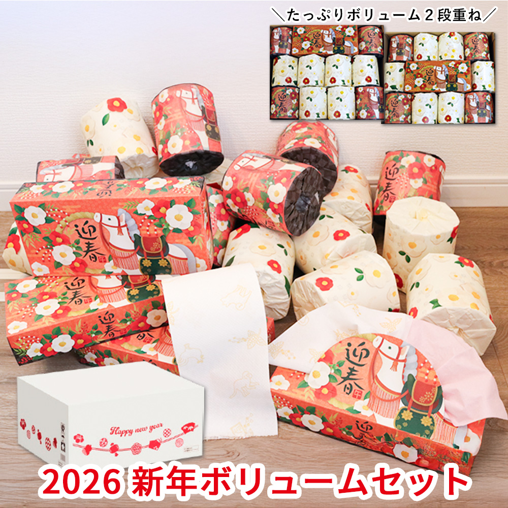 干支 2026 新年ボリュームセット プリント入 午年 馬年 10001161 ご挨拶 お歳暮 お年賀 トイレットペーパー ティッシュ ギフト