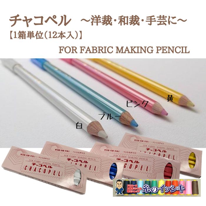 チャコペル 色鉛筆 白・ブルー・ピンク・黄 12本入/箱
