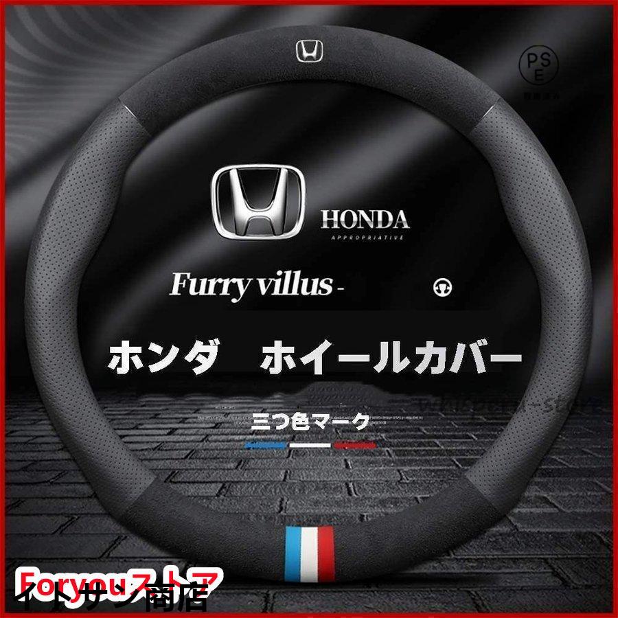 ホンダ シリーズ 専用 ステアリングカバー ハンドルカバー メッシュデザイン 文字ロゴつき 本革 新品 インテリア 内装パーツ
