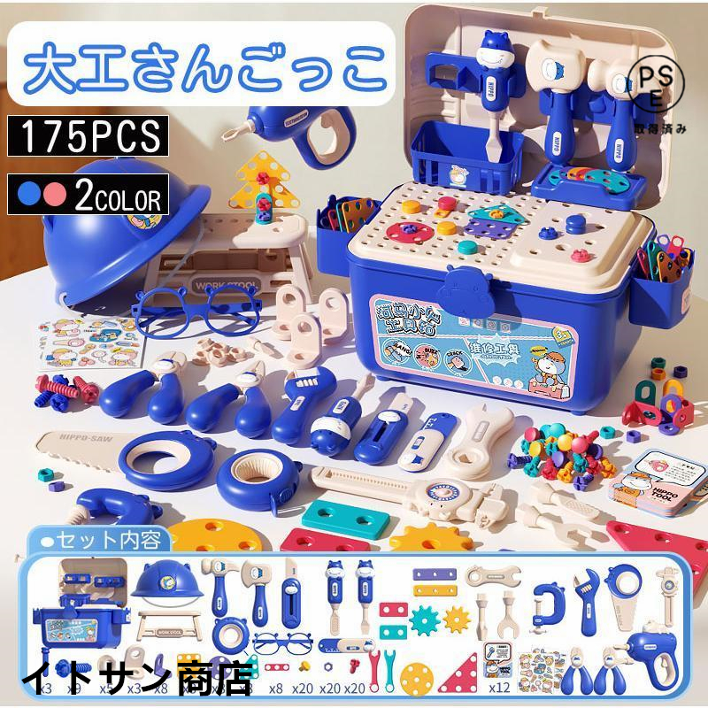 大工さんごっこおもちゃセットは、子供たちの創造力と手先の技術を育むための理想的な玩具です。このセットには、電動ドリルを含む多様な工具が55、88、175、214ピースのオプションで提供されており、色々な組み立て体験が可能です。各工具は子供の手にフィットするサイズで設計されており、安全に配慮されています。