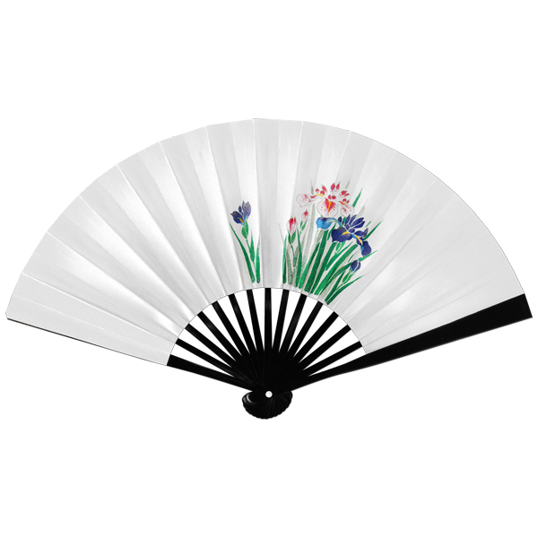 茶扇/黒塗り銀パール 菖蒲(Qa202)