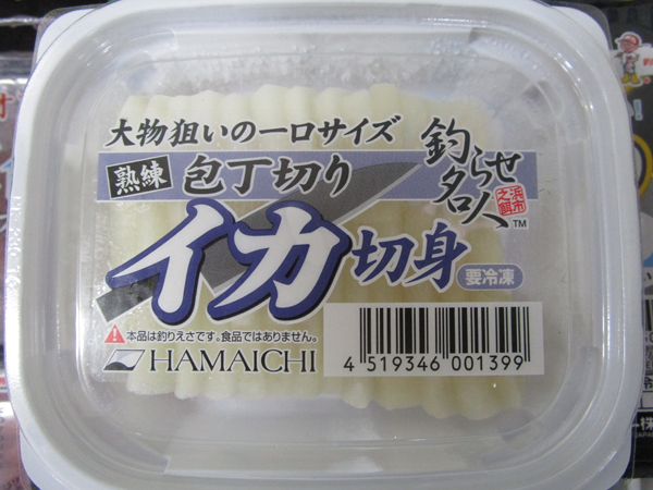 鮮度の良いイカをひと口サイズにカットしました。ずば抜けたエサ持ち性で、なんでも釣れる優れものです。磯や防波堤、船釣りからのマダイ、タチウオ、根魚などから大物アオモノ狙いにご使用いただけます。