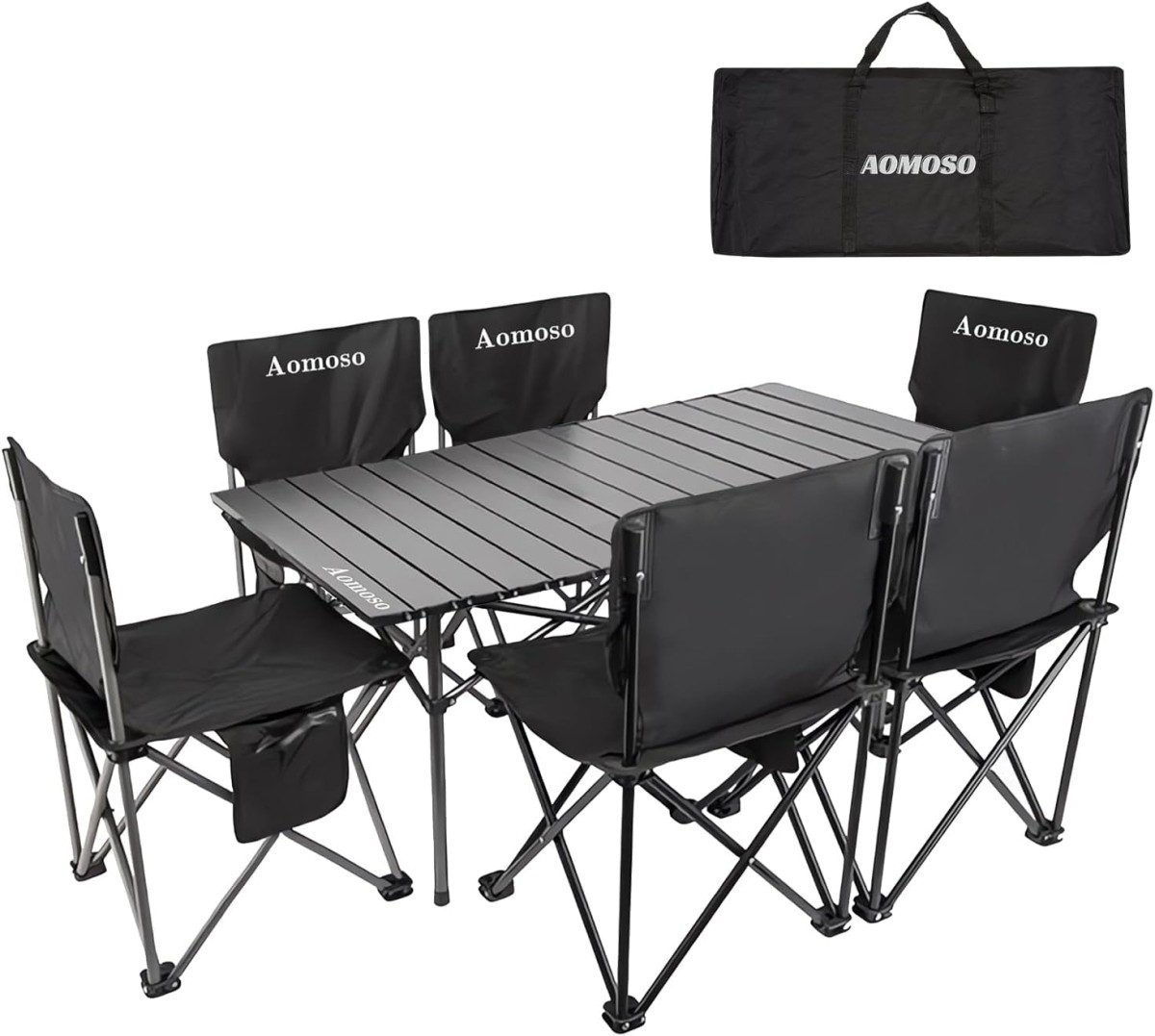 Aomoso アウトドア テーブルチェア 7点セット アルミテーブル椅子 ベンチセット ピクニックテーブル 超軽量 折り畳み 収納バッグ付き キャンプ用品 HWZ-6