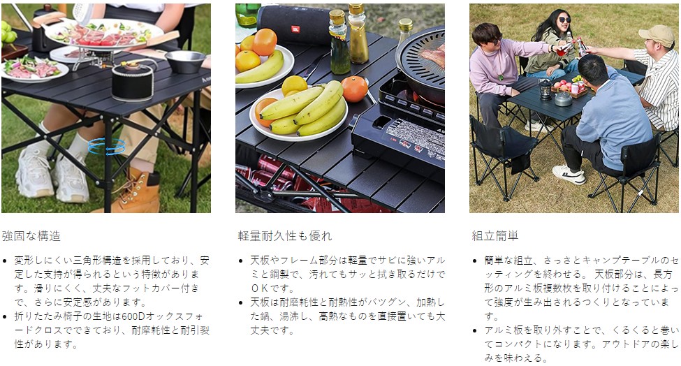 ★耐荷重:(約)テーブル150kg / チェア120kg