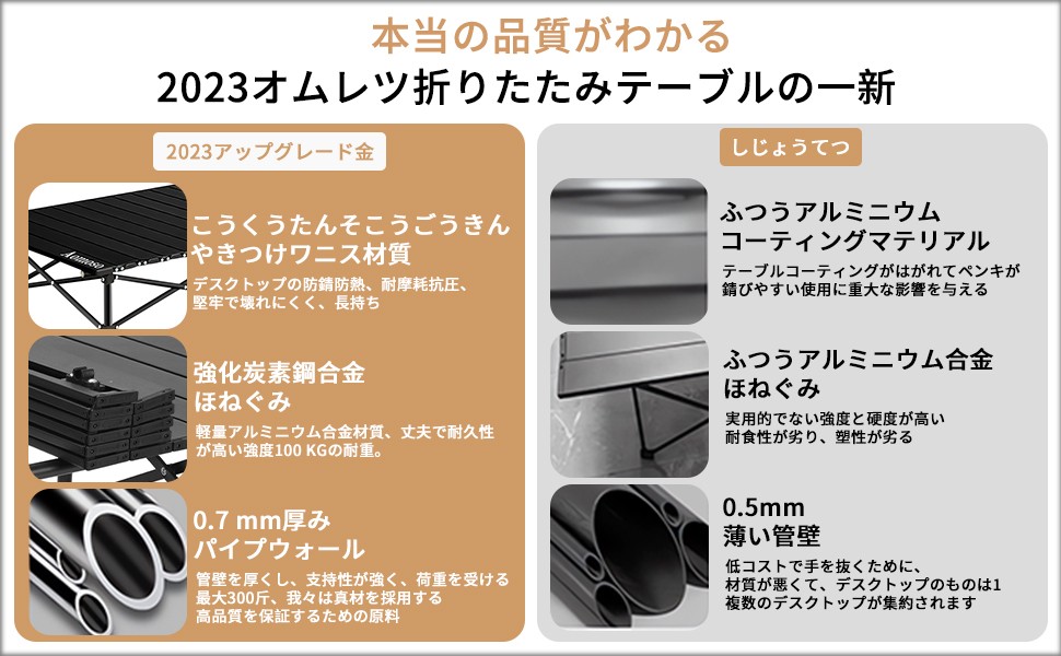 ※アルミテーブルには製造上、及び素材の性質上防ぎきれない細かい傷、擦れ、凹み、歪み、ガタ付きなどの個体差がございます。