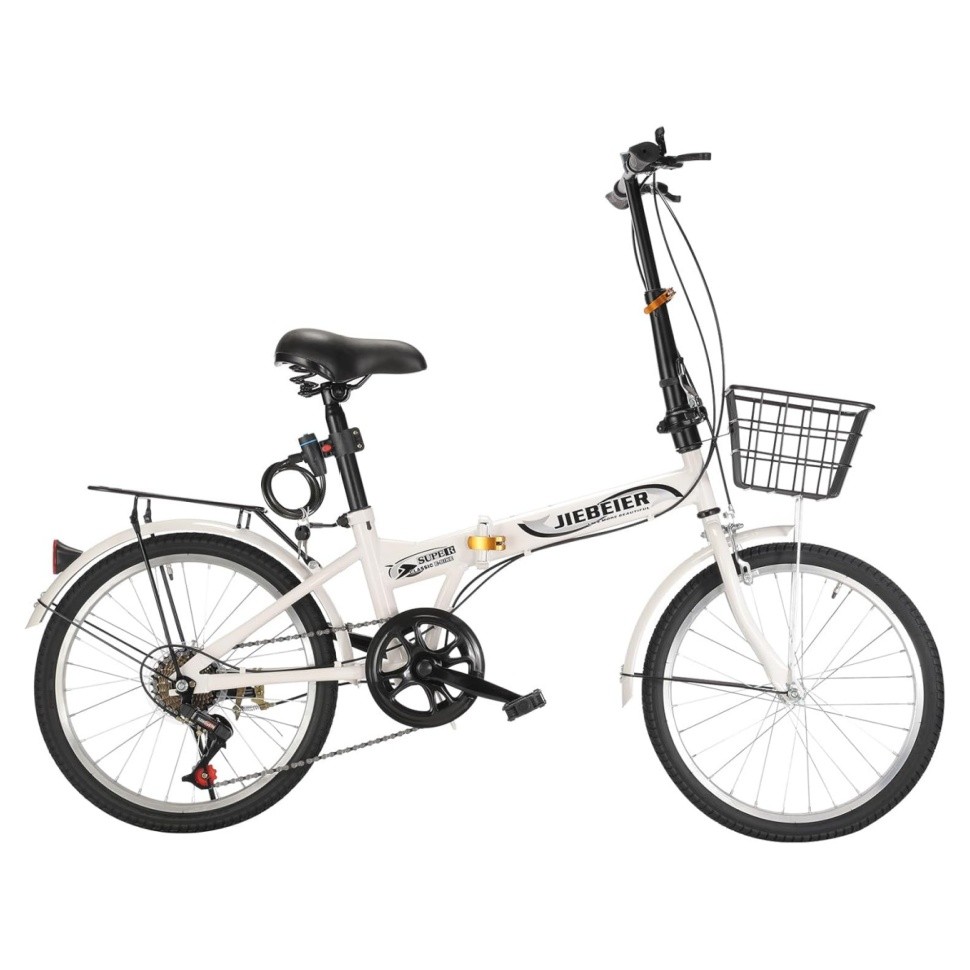 JIEBEIER 自転車 折りたたみ自転車 20インチ 7段変速ギア リアキャリア付き 前後泥除け装備 軽量 小径車 防滑タイヤ 高炭素鋼フレーム 初心者 通勤 通学 JZXC-2